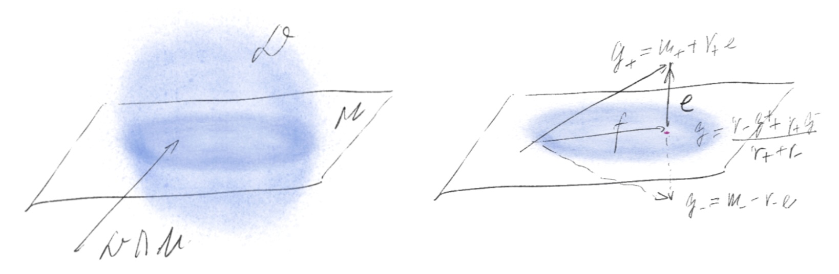 Dense approximations can be made exact on finite dimensions. Functions can be approximated by elements in the generator’s domain $$\mathcal{D}$$—qua a dense convex linear subspace—while preserving values and derivatives at a point, which is essential for identifying the generator as a second-order diffusion operator. Given a continuous linear function $$u\in\mathcal{X}^*$$ and $$\mathcal{M} =\ker u$$ is the desired subspace with "good" points. Choose $$e\in\mathcal{X}$$ with $$u(e)=1$$ yields the decomposition: $$\mathcal{X} = \mathcal{M}\oplus\mathbb{R}e$$. For any $$f \in \mathcal{X}$$, dense gives you an approximation $$g \in \mathcal{D}$$. Only need to constrant $$g$$ to $$\mathcal{M}$$.A measure can hide pathologies at scale. But the generator sees: first-order effects (drift, killed by symmetry); second-order effects (diffusion); and jump intensities (residual, killed by locality). Measures allow infinitely many microscopic perturbations that do not affect macroscopic properties; infinitesimal generators collapse these perturbations into finitely many coefficients.